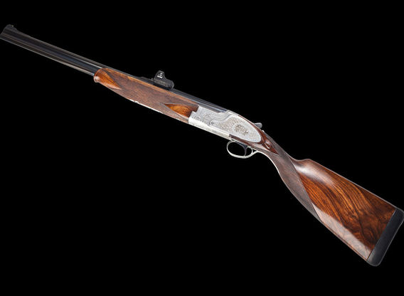 Im Kaliber 8x57 IRS mit Seitenplatten von FN für Frankreich gefertigt mit abnehmbaren Vorderschaft. Früher war es in Frankreich gesetzlich erforderlich das eine Kipplaufwaffe in 3 Teile für den Transport zerlegt werden muss.